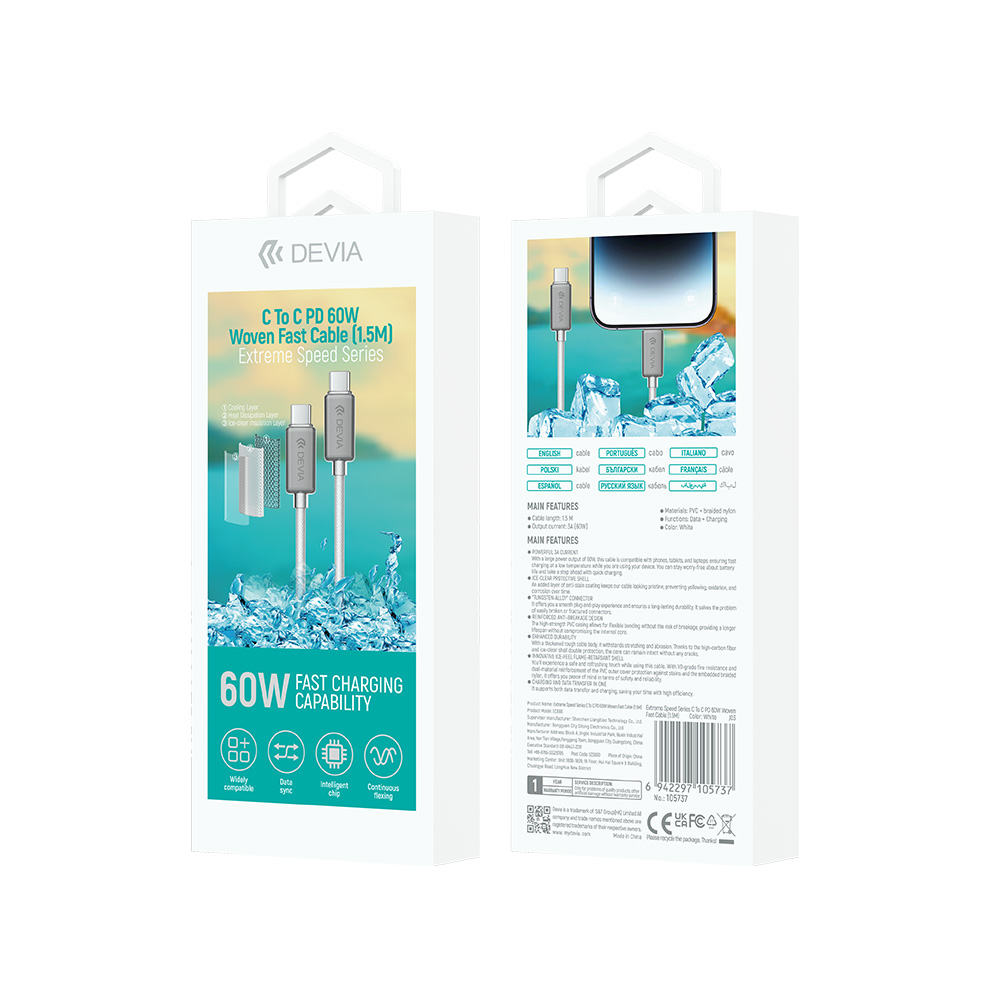 Extreme series 1.5 m USB-C – USB-C cable for fast charging and data transfer with PVC-coated nylon braid The EC688 Extreme series cable is a flexible USB-C – USB-C cable with a durable nylon braid. An additional protective layer prevents stretching and yellowing. The cable enables fast charging (60W power) and data transfer. You can charge your tablet, smartphone or power bank and efficiently transfer data between devices.