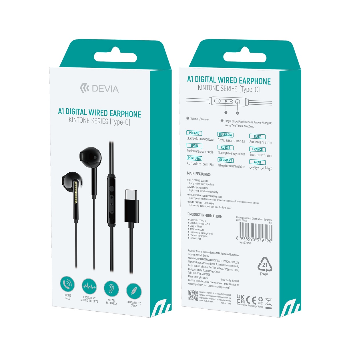 Devia Kintone A1 are in-ear wired earphones for smartphones equipped with a USB-C port and not equipped with a 3.5mm jack socket. A cable made of flexible silicone will ensure the longest possible use.