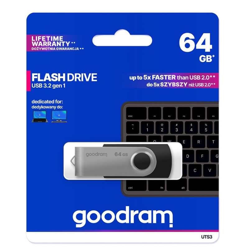 GOODRAM Pendrive UTS3 – 64GB USB 3.2 Μαύρο
