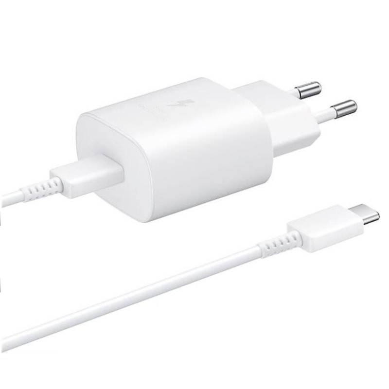 Samsung travel mains charger with USB-C output and a maximum power of 25W.