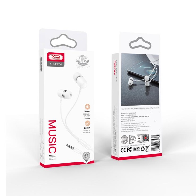 XO EP64 are wired earphones for devices equipped with a 3.5 mm jack socket. They are universal and fit many devices such as: smartphones, mp3/mp4 players, laptops and others. The cable made of flexible silicone will ensure the longest possible use time.